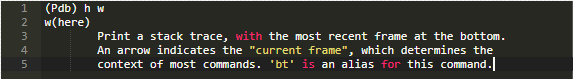 一旦你使用pdb一段时间,你会发现要了解全部知识还有很长的路要走。你始终可以通过h命令获得帮助。