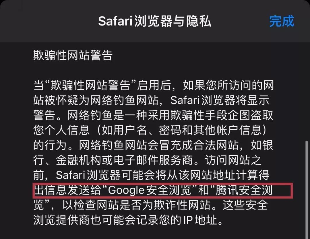 10 月 15 日消息,苹果周一因向腾讯发送包括 IP 地址在内的网络浏览数据而备受抨击。作为 iPhone 和 iPad 安全功能的一部分,苹果会将数据发送到腾讯网,从而在用户加载网站之前警告用户网站是恶意的或不安全的。