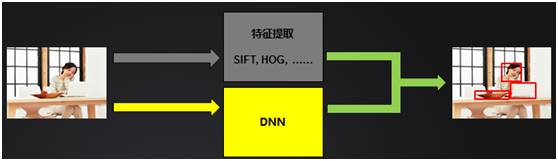 同时,抽取计算机视觉特征和 DNN 特征,之后进行多目标的识别。如下图: