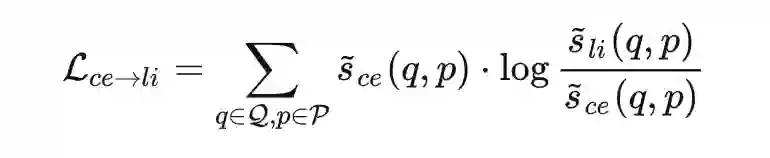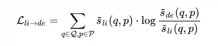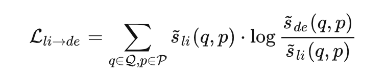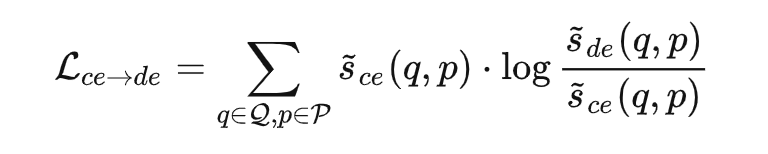 为蒸馏损失,注意这里还额外包括了传统的 Cross-Encoder 到 Dual-Encoder 的蒸馏损失: