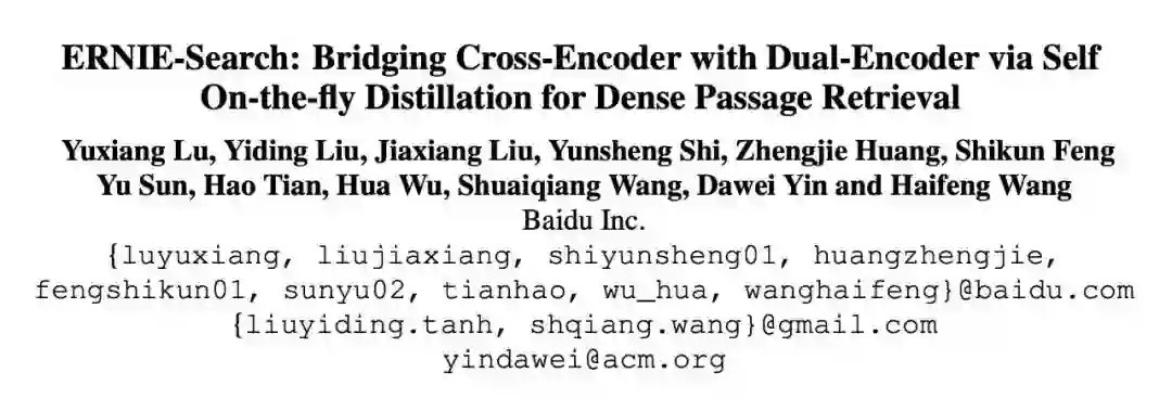ERNIE-Search: Bridging Cross-Encoder with Dual-Encoder via Self On-the-fly Distillation for Dense Passage Retrieval