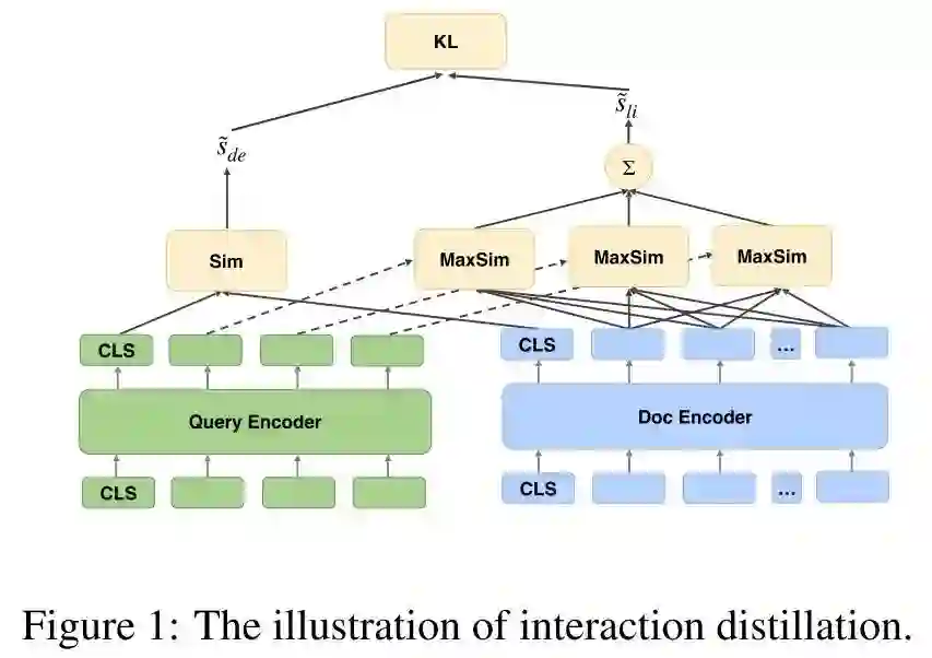 然而,在针对稠密检索模型的知识蒸馏的相关研究中,虽然目前已经有很多工作尝试过将表达能力更强的交互模型 (Cross-Encoder) 或延迟交互模型 (ColBERT) 蒸馏到推理速度更快的双塔模型 (Dual-Encoder) 中,实验结果也充分证明了知识蒸馏对于双塔模型训练的有效性,但是这些工作均采用的是