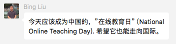 今天是疫情催生的我国“在线教育日”,尽管可能存在一些不如人意的地方,但今天注定将会成为改变我国乃至全世界教育教学模式的里程碑,也可能成为我国教育实现跨越发展,如同手机支付超越西方发达国家信用卡一样的重大事件,这一天必将成为我国教育变革和发展的一大步,以此铭记!