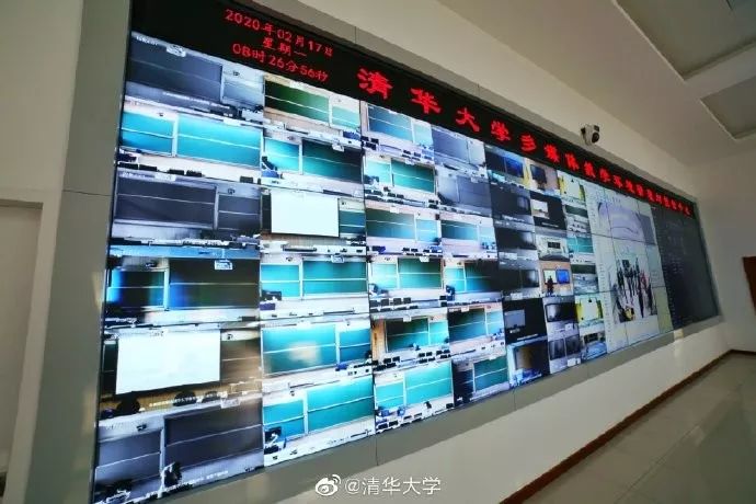 今天是清华大学在线上课的“开学日”,早上8点,清华大学教学指挥中心的大屏幕上实时显示着正在进行线上教学的课堂情况。150多个课堂在云端同期开启,数千名师生通过视频直播、互动、弹幕、答题等多种手段,有条不紊地开展各学科教学活动。