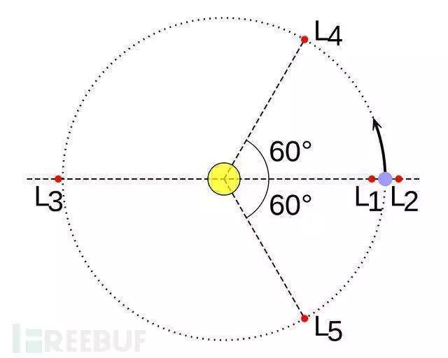 之前我们国家的鹊桥卫星大家都知道,它的位置就是处于拉格朗日2号点上。拉格朗日点目前计算出来的一共有5个,通俗点儿讲就是在这些点上,卫星受到的来自星体的引力可以达到相对平衡的状态,这样可以节省很多的燃料并且保持轨道不变,感兴趣的可以去查一下相关知识。下面是拉格朗日5个点的图,鹊桥卫星就是处于L2点轨道上做圆周运动,这样可以在月球的背面做一个信号中继。