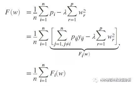 以看出,fw式子右边依赖于权重向量w。那么关键来了。NCA的目标即调整w,使fw最大化。这里我们使用正则化的目标函数: