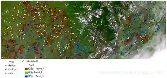 本次实验选择波段8、5、1进行波段组合,并由ArcGIS直接导出为RGB颜色,这样的话就得到一副RGB彩色图像,其归一化范围为0~255。