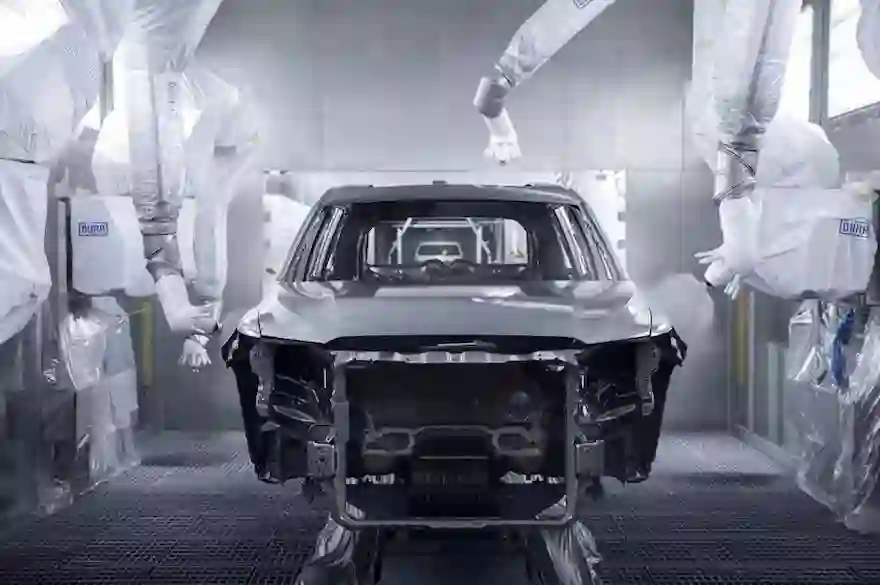 冲压车间采用了全封闭全自动化6600t的五序压机及国内首条采用ABB机器人的直线七轴同步线,同时采用蓝光检测设备,保障冲压件的品质和精度。
