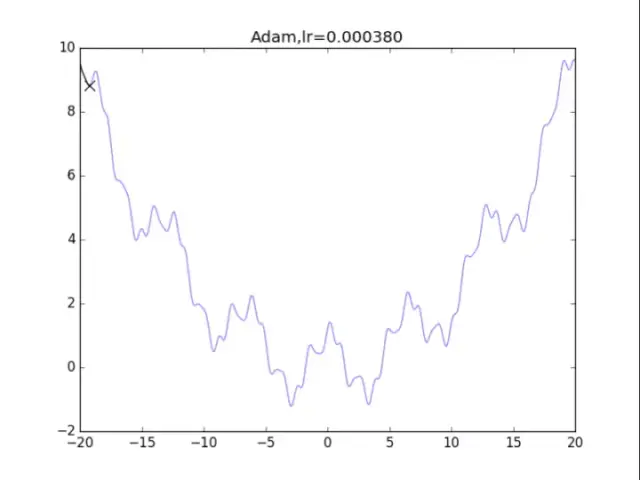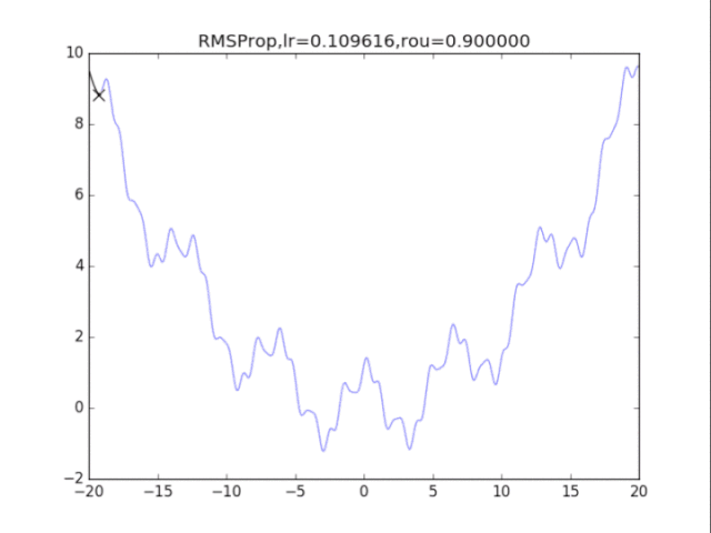 RMSProp_x.append(x), RMSProp_y.append(f(x))