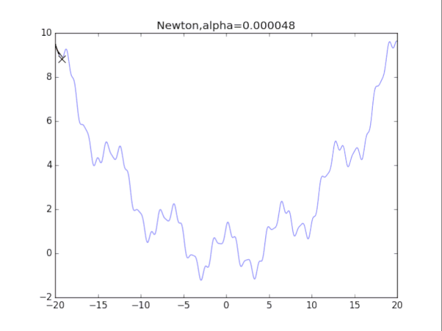 x = x - g/(gg+alpha) # 走到曲面的最低点