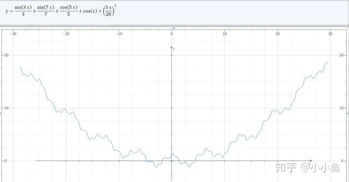 return (0.15*x)**2 + np.cos(x) + np.sin(3*x)/3 + np.cos(5*x)/5 + np.sin(7*x)/7