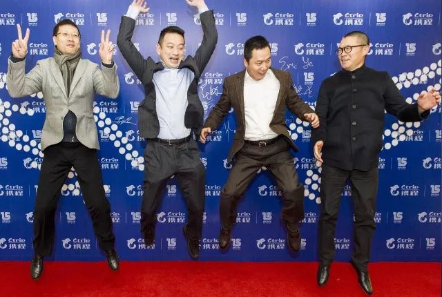 ▲ 携程15周年庆典上,携程四位创始人:沈南鹏,梁建章,范敏,季琦