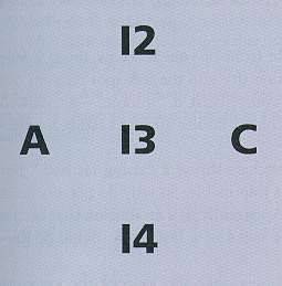 看上面的图像,中间的数字是B还是13?当把12和14从中抹去,很多人会选择是B,同理把A和C抹去,则会选择是13。