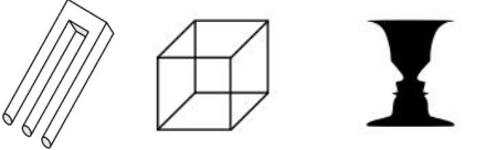 从左到右依次为:魔鬼音叉、内克尔立方体和鲁宾的花瓶
