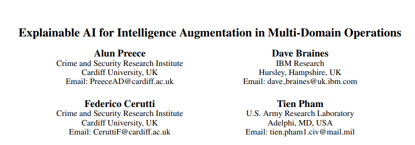 便捷下载,请关注专知人工智能公众号(点击上方关注) 点击“发消息” 回复 “XAIMDO” 就可以获取《《可解释人工智能在多域作战中的智能增强》美国陆军、IBM、卡迪夫大学等论文》专知下载链接