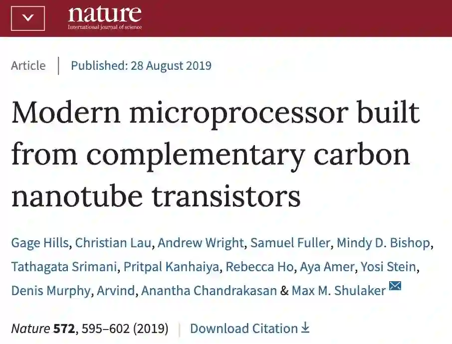 今天,来自MIT的Gage Hills等人今天在Nature发表论文,报告了碳纳米管芯片制造领域的一项重大进展:一个完全由碳纳米晶体管构成的16位微处理器。这是迄今为止用碳纳米管制造的最大的计算机芯片。