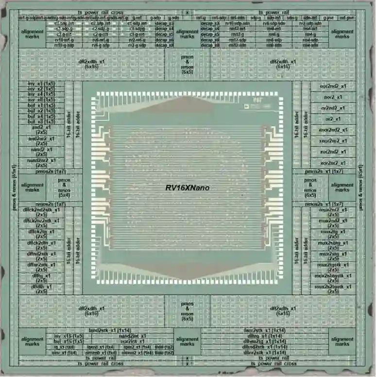 具体来说,RV16X-NANO是使用标准EDA工具设计的,并且只利用了与商用硅CMOS制造设施兼容的材料和工艺。