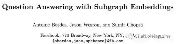 本期我们将介绍 KB-QA 传统方法之一的向量建模(Vector Modeling),我们以一个该方法的经典代表作为例,为大家进一步揭开知识库问答的面纱。该方法来自 Facebook 公司 Bordes A, Chopra S, Weston J 的论文 Question answering with subgraph embeddings(文章发表于 2014 年的 EMNLP 会议)。