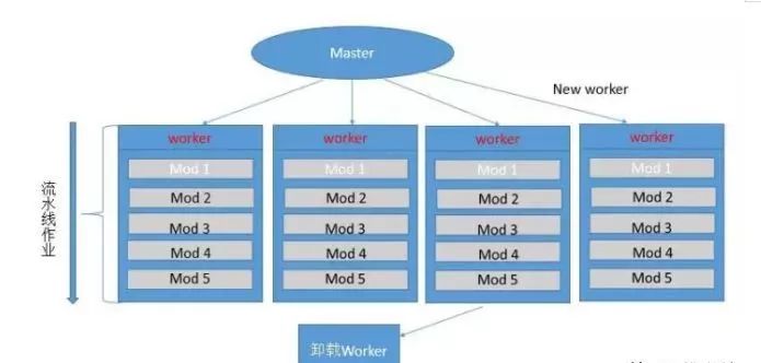 高可靠性:主控进程和 worker 是同步实现的,一个 worker 出现问题,会立刻启动另一个 worker。