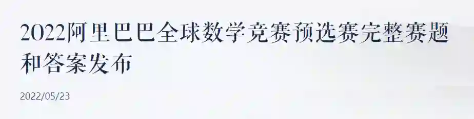 5 月 23 日,2022 年阿里巴巴全球数学竞赛于达摩院官网公布预选赛赛题及答案。