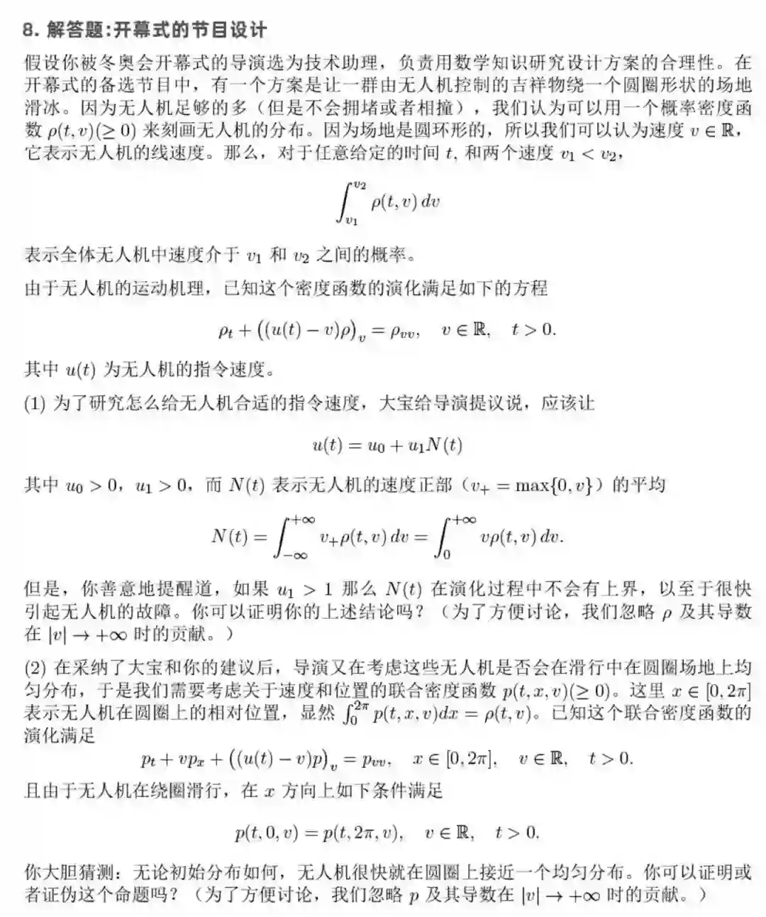 第 8 道解答题关于「开幕式的节目设计」,涉及到无人机的绕圈滑行等。该解答题也分为两小问。