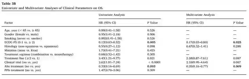 Zhao S, Gao G, Li W, et al.Antibiotics are associated with attenuated efficacy of anti-PD-1/PD-L1 therapies in Chinese patients with advanced non-small cell lung cancer[J]. Lung Cancer,2019, 130:10-17. DOI: 10.1016/j.lungcan.2019.01.017.