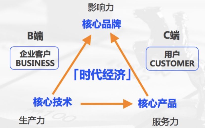 在一个新经济行业崛起的过程中,核心技术、核心产品和核心品牌是重要的三个要素,首先需要以“核心技术”作为价值创造的基础,基于“核心技术”的“核心产品”推动用户服务的升级,最后借助核心品牌实现有效的市场占位。从核心技术到核心品牌主要带来的是生产链条上B端企业服务的机会,从核心产品到核心品牌带来的则是交付链条上C端市场的机会。本次疫情带来的一个主要影响就是大量用户首先接纳了品牌定位,然后倒逼核心产品和核心技术的快速迭代,之前模式是基于服务能力的从获客到留客,现在则是考验企业产品能力的“能留住客户才算完成真正的获客”。