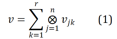 相关工作 Word2ket 通过张量积,表示单个词嵌入为若干低维向量的纠缠张量形式,其公式如下: