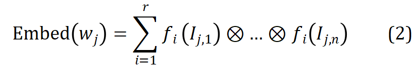 从 r 组参数化的语素嵌入矩阵中索引出相应的语素向量,并通过张量积进行纠缠张量表示得到相应的词嵌入,该过程形式化如下: