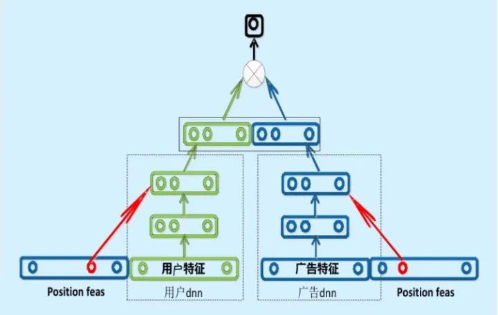 百度的双塔模型分别用复杂网络对“用户特征”和“广告特征”进行了Embedding化,在最后的交叉层之前,用户特征和广告特征之间没有任何交互,这就形成了两个独立的“塔”,因此称为双塔模型。