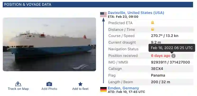 这艘悬挂巴拿马国旗的巨型汽车运输船Felicity Ace于2月10日从德国出发,本应在23日开到美国罗德岛州港口,但16日却在亚速尔群岛西南约90海里处的大西洋航行时开始起火。