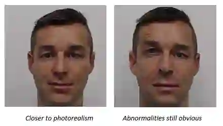 如下图所示,生成器的原始输出非常粗糙,虽然看起来有几分像人类,但辨认起来却非常困难,并且出现了极其明显的扰动(perturbation)。