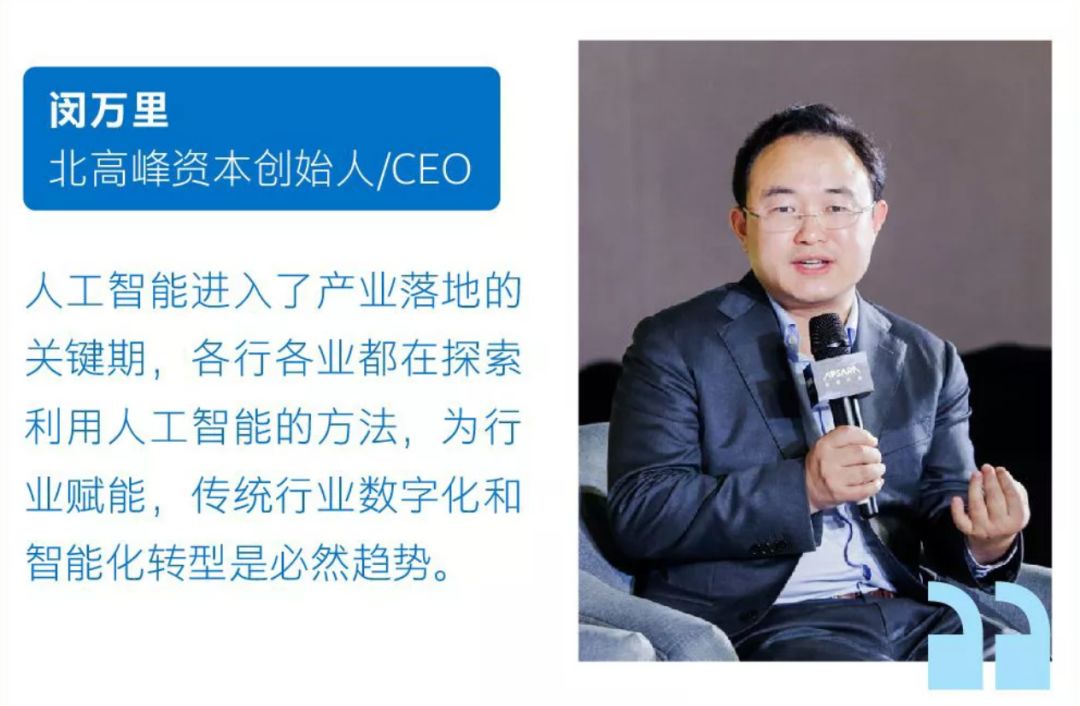 在本次圆桌讨论上,前阿里云首席科学家、现北高峰资本创始人兼CEO闵万里表示:智能化是大势所趋,IT建设之后,今天的信息化,或者是人类社会的群体性行为、个体行为的标注化、标准化、标签化已经完成。如今谁可以从中找到智能、价值创造的方式,谁就可以享受到产业的红利。
