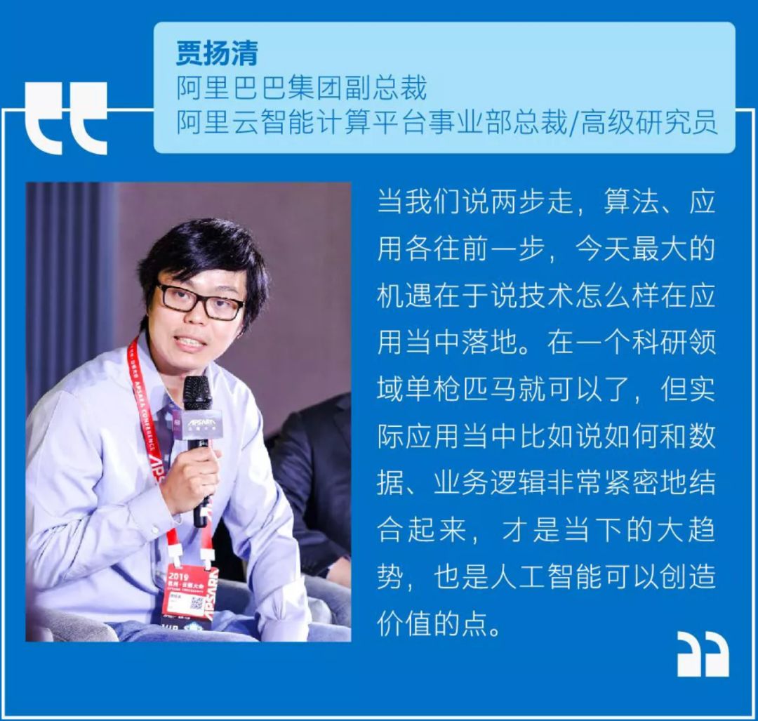 贾扬清谈到未来趋势时表示:从2019年的发展趋势来看,算法的发展速度将放缓,或者说是变得稳定。当我们说两步走时,算法、应用都应该各往前一步,今天最大的机遇在于技术怎样在应用当中落地,在一个科研领域单枪匹马就可以了,但实际应用当中比如说如何和数据、业务逻辑非常紧密地结合起来,才是如今的大趋势,也是AI可以创造价值的点。