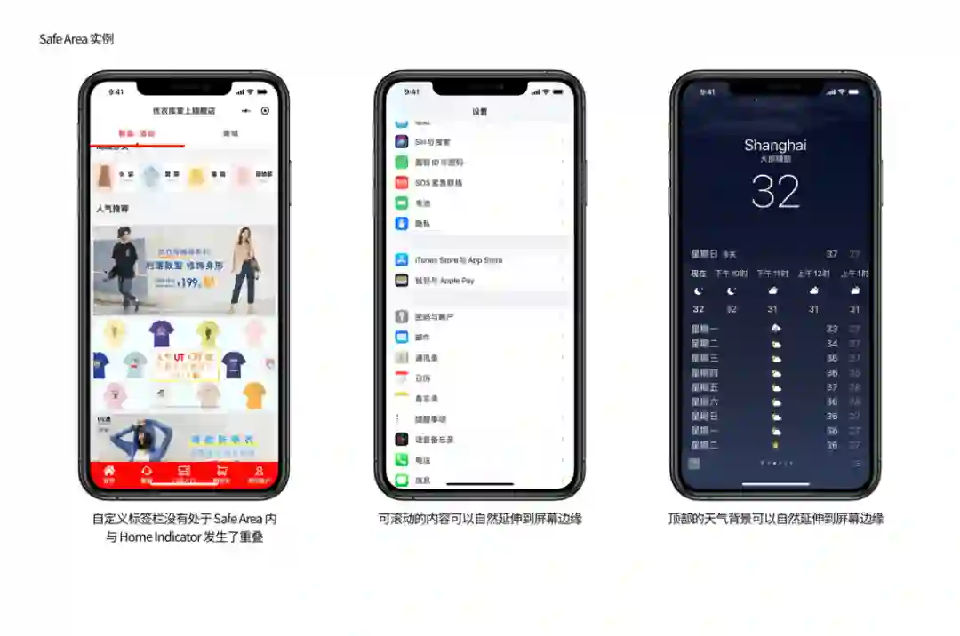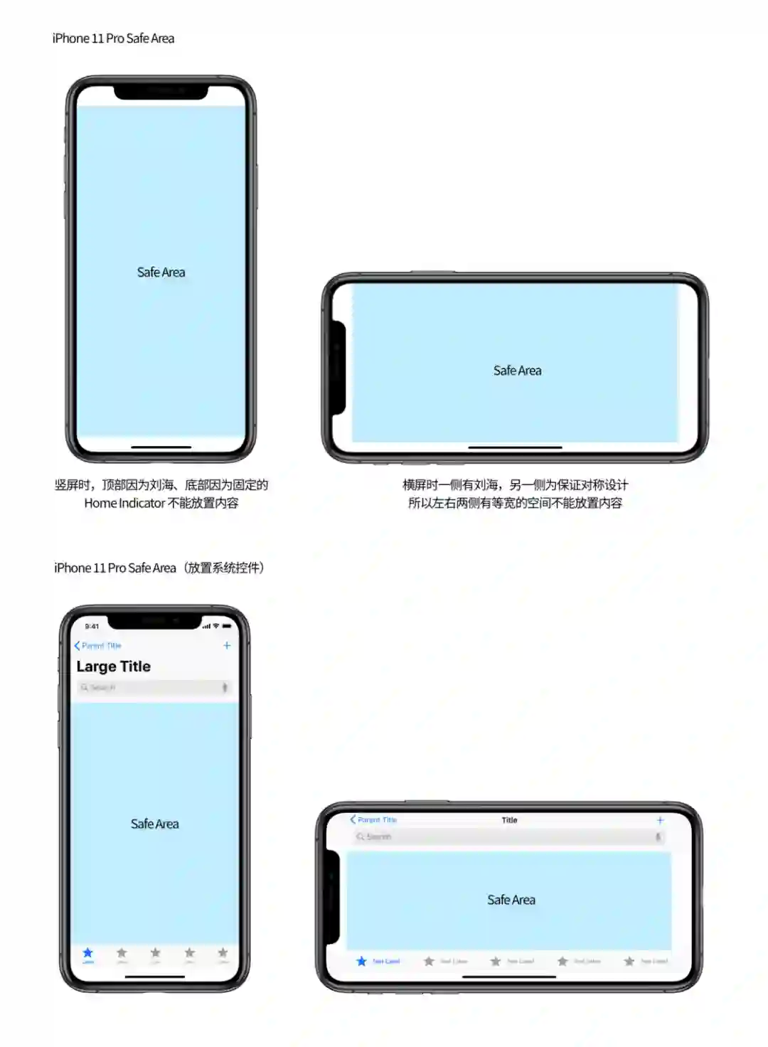 Safe Area 安全区域:非规则屏幕下的内容布局规范。
