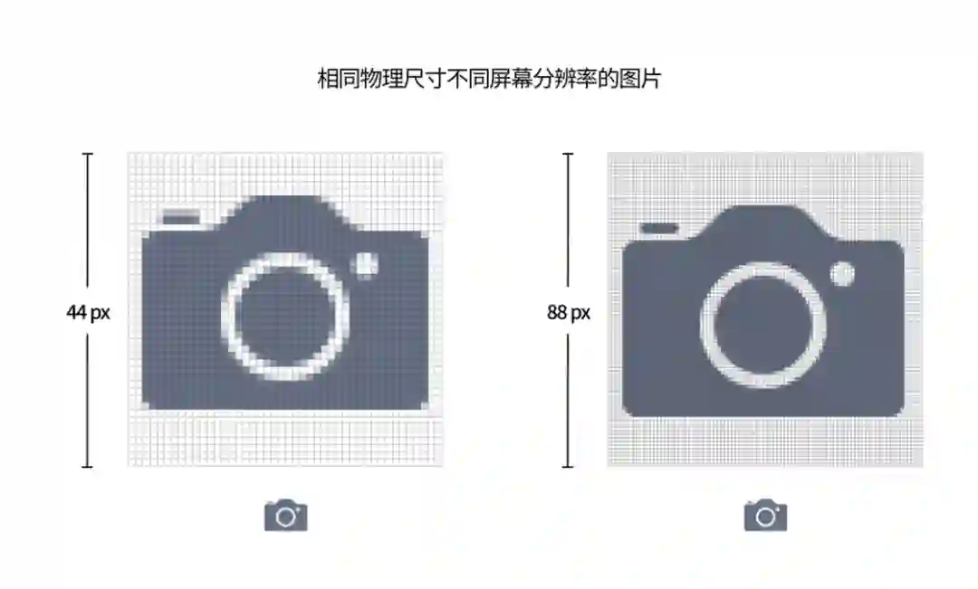 回到上一部分提到的照相机的图片,它的高度就可以直接统一表示成 44pt,不再需要提及是什么设备、什么样的屏幕,这样极大地减少了沟通成本,剔除了设计时无关的干扰因素。