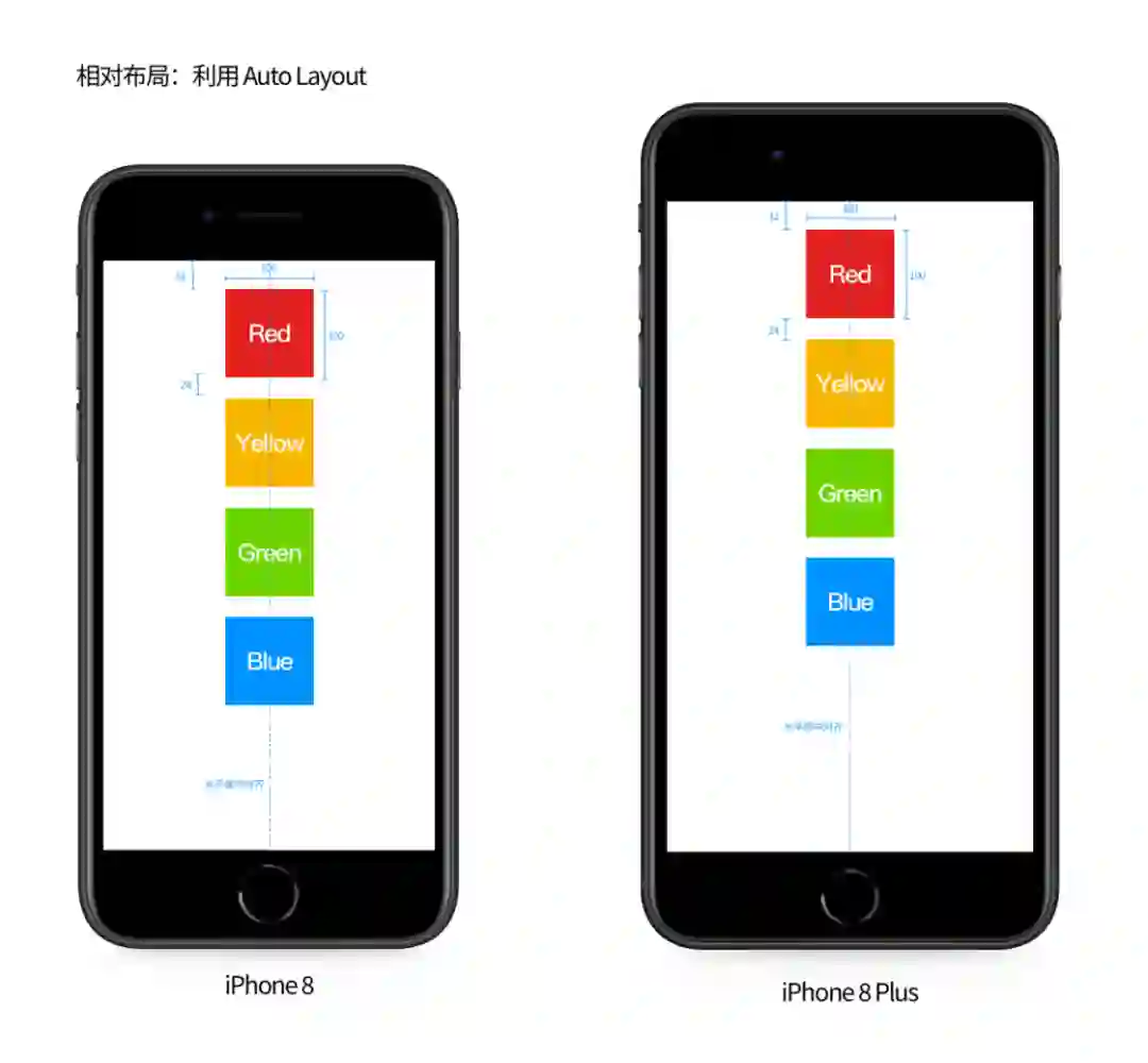 通过 Auto Layout 这个武器,利用相对布局的思想,设计师和开发者确定好不同 view 之间的约束关系,就能让整个界面在不同尺寸的设备上都能正确地显示,不再需要一个设备一套设计方案,这样的设计也被称为「适应性布局设计」。