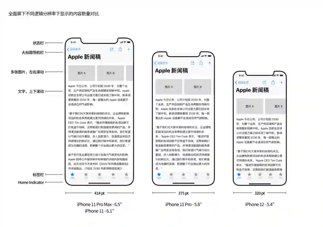 从第一代 iPhone 到 iPhone 12,每一次屏幕尺寸的变化不仅仅是硬件上物理参数的改变,背后还有着缜密的 app 设计逻辑牵制着硬件参数的变化: