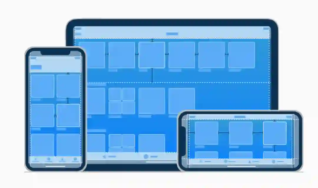 App 的内容布局可以自适应多种不同尺寸、不同比例的屏幕,在 Auto Layout、Size Class、Safe Area 的帮助下,固定尺寸的 app 设计思想被弱化,Apple 生态圈的 app 自由变换显示尺寸指日可待;