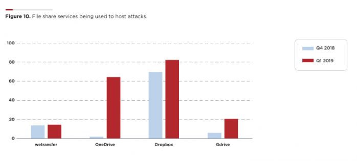 微软 OneDrive 用于托管恶意文件的使用率显着上升。根据 FireEye 报告显示,微软 OneDrive 上一季度托管恶意文件的用户数量激增 60% 以上,而此前仅上升了一位数百分点。据 FireEye 称,OneDrive 在托管恶意文件的使用率方面,已经超过Dropbox、Google Drive 和 WeTransfer 等竞争对手。