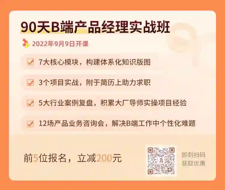 推荐你来《90天B端产品经理实战班》提升,多位10年+经验大厂实战导师在线直播,带你掌握系统的B端产品工作方法,助力你顺利转岗&提升专业能力。