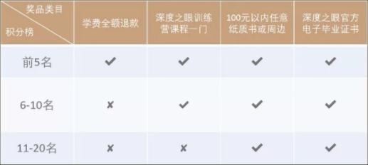 按学习任务要求完成全勤打卡且排名前20的同学,我们将赠送你深度之眼定制周边福利!