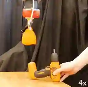 你看,这沉重的电钻,无人机,还有无人机的遥控器,都比机器人本身重得多。