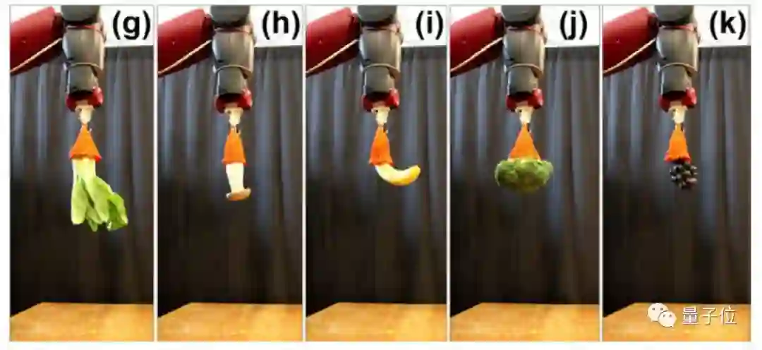 团队试着让机器人抓取了12种食物 (包括苹果,此处未出镜) ;