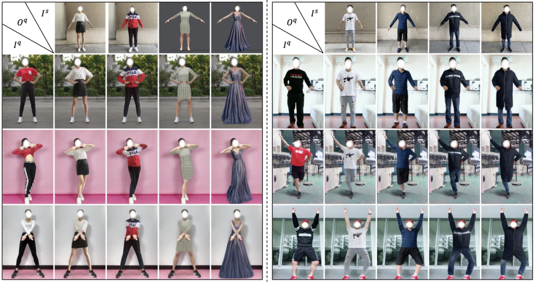 由于缺乏对人体潜在的 3D 信息感知能力及相应的多样化姿态-衣服数据集,学术界此前很难处理好实际真实用户场景下的数据,只能在一些固定分布的数据集上有相对好的效果。现有的虚拟换装工作局限于简单人体姿势及贴身衣物,极大地限制了其在真实场景下的应用能力。