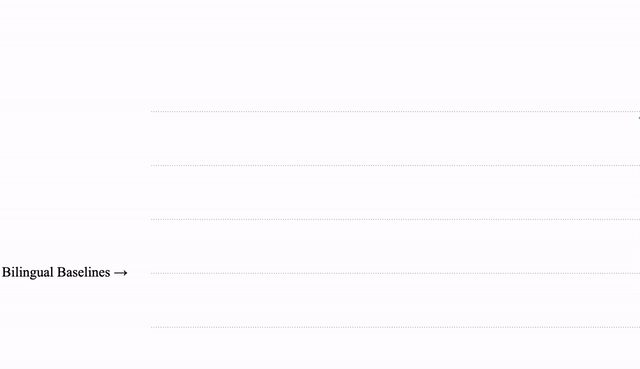 在使用所有可用数据(超过 250 亿个来自 103 种语言的样本)进行训练后,我们观察到:语料越少的语言越有显著的翻译质量提升,这将语料最少的 30 多种语言的翻译质量平均提高了 5 个 BLEU点。对比的两个模型一个是双语基线模型(即仅使用特定的两种语言进行训练的模型),另一个是通用的多语言模型。而后者对于每种语言的具体表征容量(Representational Capacity) 居然和前者差不多!因此尽管这种效果已得到证明, 但还是令人喜出望外。此结果表明,大规模多语言模型拥有强大的泛化能力,并且能在大量不同语言中找出表征相似性。