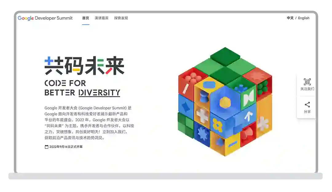 9 月 14 日大会主旨演讲闪亮登场,24 个产品线和话题最新动态,80+ 个技术专题演讲向开发者全面在线开放。你可以第一时间获取谷歌开发工具和技术的更新资讯,了解丰富前沿案例与资源,助力你开发实践更高效,迸发更多创新灵感,共同以科技之力构建美好未来。届时来到线下的朋友们也可以随心挑选感兴趣的演讲或座谈会,现场聆听学习。