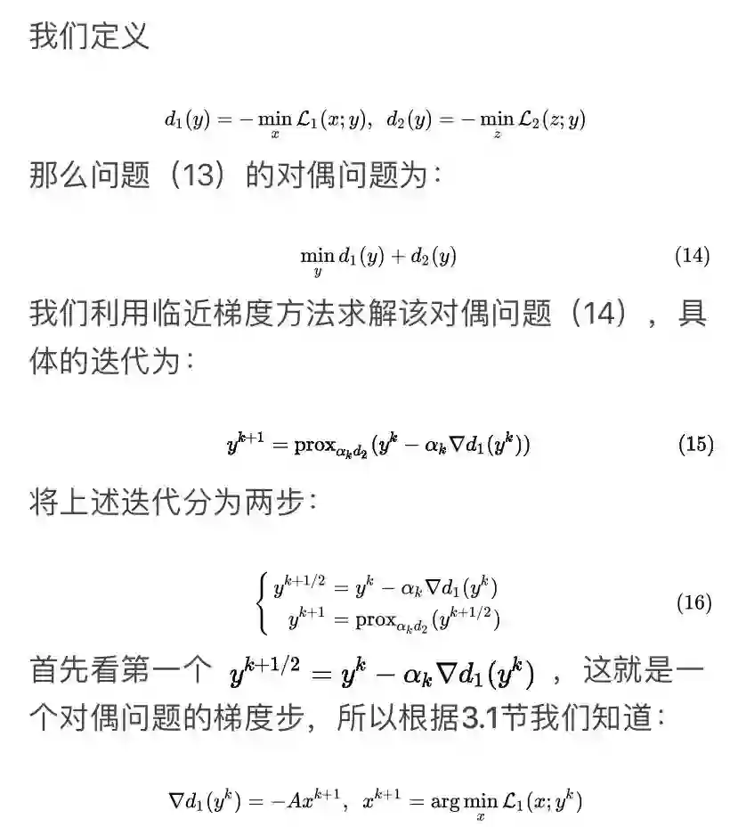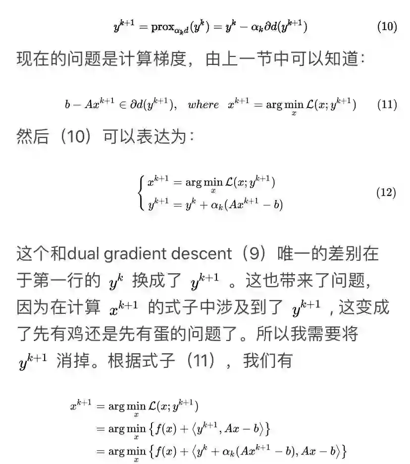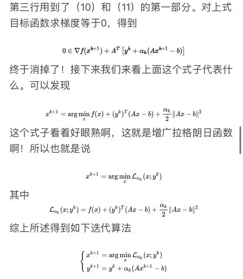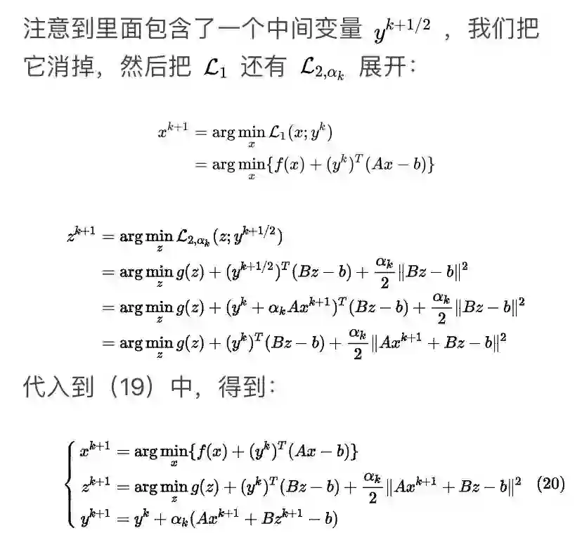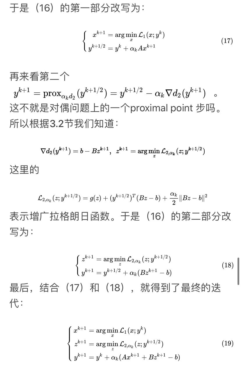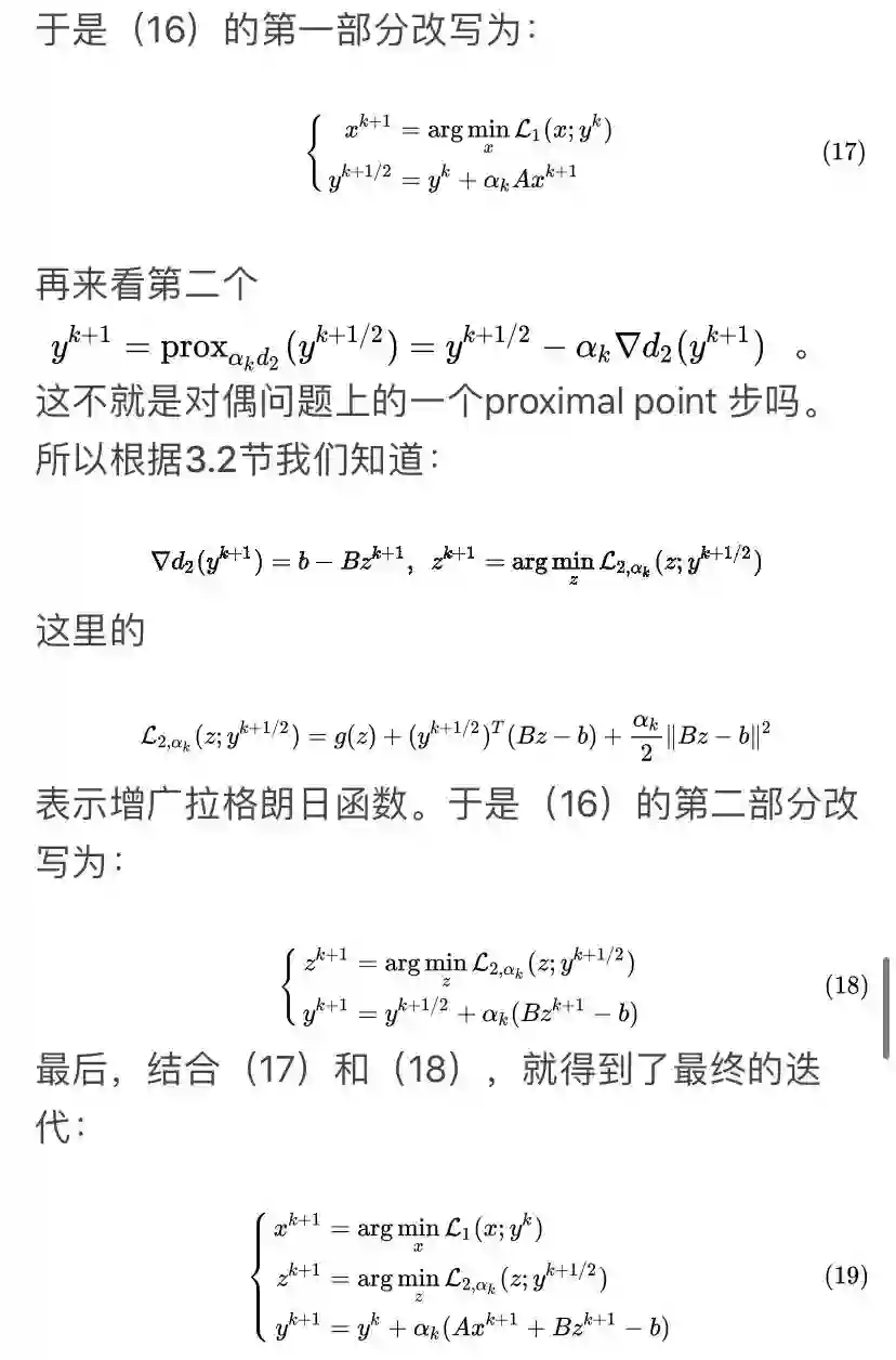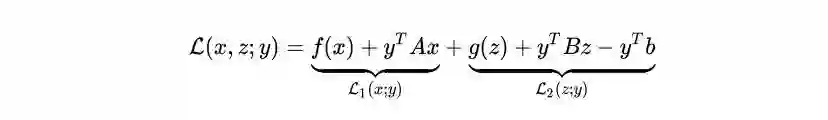 可以看到这个方法很像ADMM,差别就在于对于x子问题,ADMM用的是增广拉格朗日函数,而这个方法用的是拉格朗日函数。