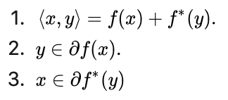 :令函数 f 是convex proper and closed. 那么下面三条对任意 x,y 等价