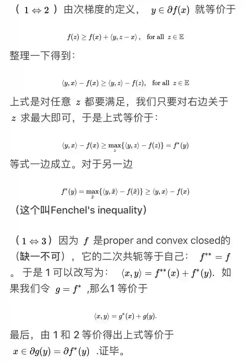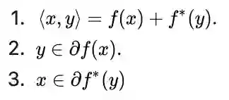 :令函数 f 是convex proper and closed. 那么下面三条对任意 x,y 等价